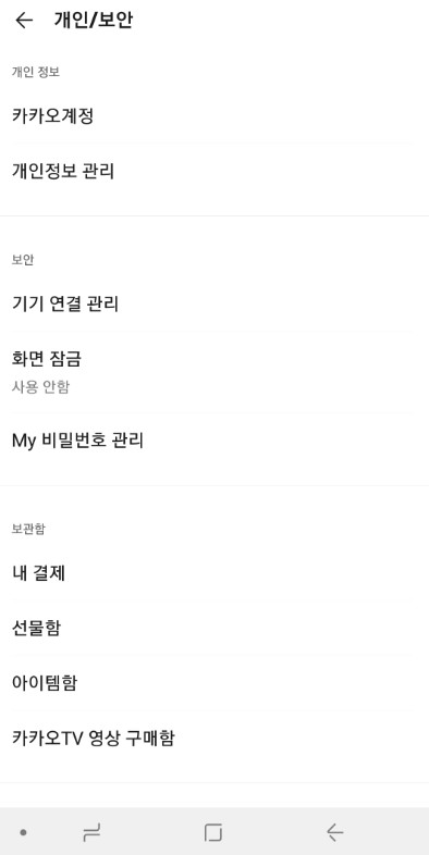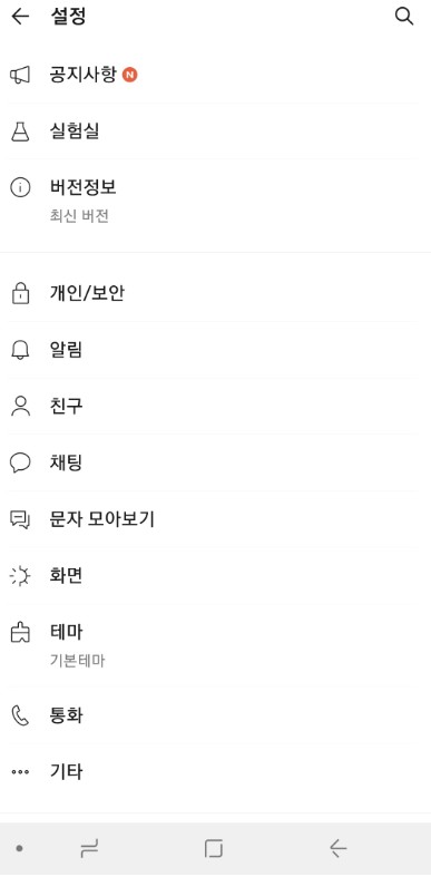 개인보안탭으로 가줍니다. 기타 화면 테마 친구등의 설정관리도 해줄수 있는데요