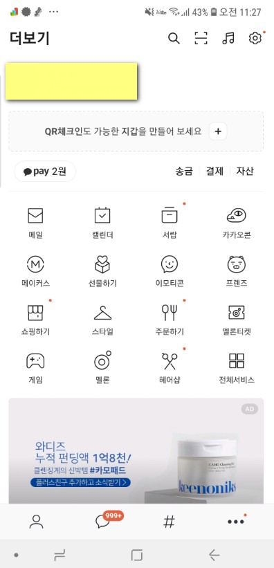 위와같이 카카오톡을 실행을 해주세요 그러면 자신의 설정창으로 들어가서 설정값을 변경해줄수 있습니다