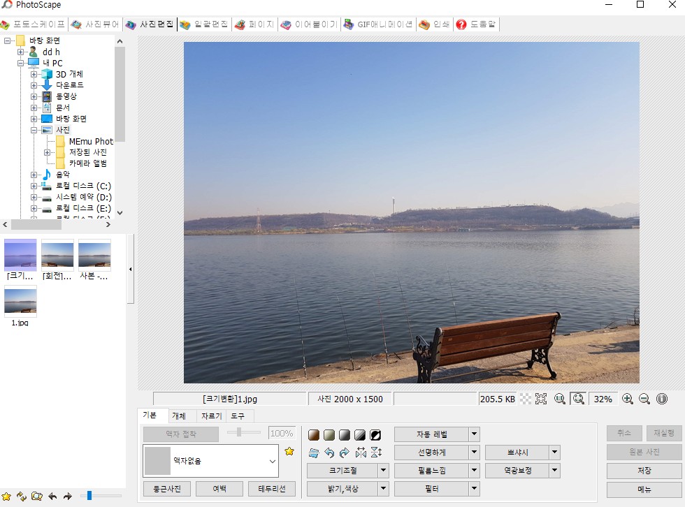 실제 포토스케이프 실행 화면인데요 색상검출과 이름바꾸기 아무래도 기본적인 사진 편집을 많이 이용하겠죠